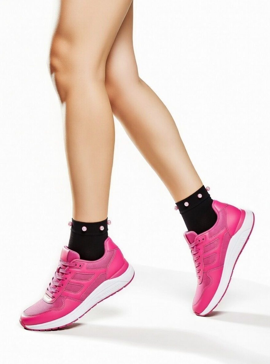Deze zwarte microvezel sokken zijn voorzien van delicate roze parels rond de enkels, wat zorgt voor een elegante en opvallende look. De combinatie van het klassieke zwart met de subtiele roze accenten maakt deze sokken een chique aanvulling op elke outfit.